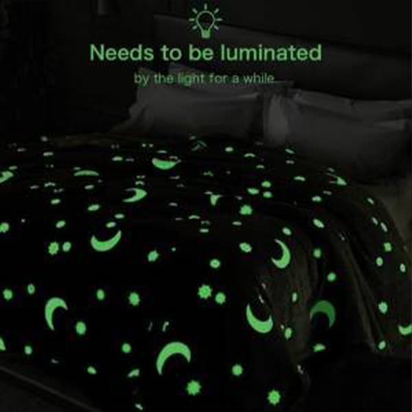 A sötétben világító varázslatos takarónak rendkívül puha és bolyhos anyaga van, amely még a legérzékenyebb bőr számára is megfelelő. Tegye ki a nappali fénynek, és sötétben világítva