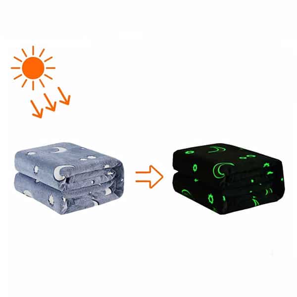 A terméknek nincs szüksége elemekre. Tegye ki a takarót közvetlen napfénynek vagy mesterséges fénynek. Egy óra erős fény lehetővé teszi, hogy a takaró 30 percig világítson. Karbantartás: Mossa a takarót óvatosan hideg vagy meleg vízben 30 °C alatt. Ne szárítsa, fehérítse vagy vasalja. A takaró újra fog világítani mosás után. |