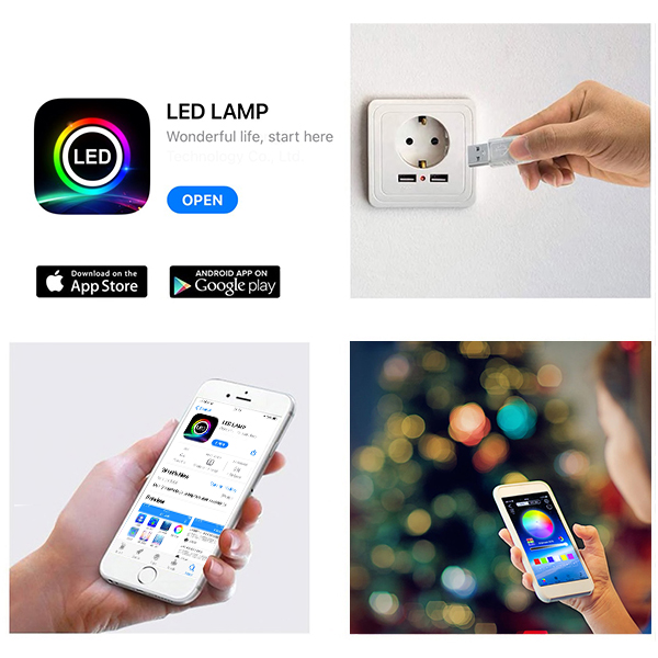 Az okos ünnepi fények lehetővé teszik, hogy a fények színeit a saját igényeid szerint állítsd be a telefonodon, és egy igazi mesebeli hangulatot varázsolj! Egyszerűen dugd be a fényeket egy USB aljzatba, és csatlakoztasd őket a telefonoddal az ingyenes alkalmazáson keresztül!