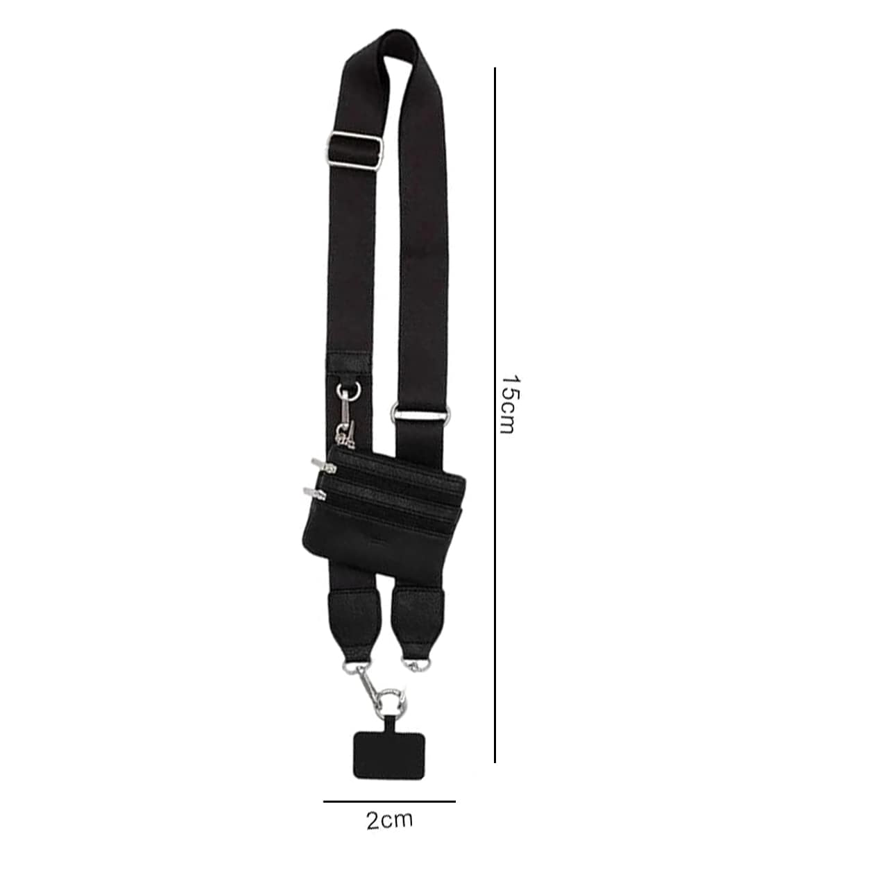 101 - 147 cm (állítható pánthossz), 4 cm (pántszélesség), 11,5 x 9 cm (tasak mérete)