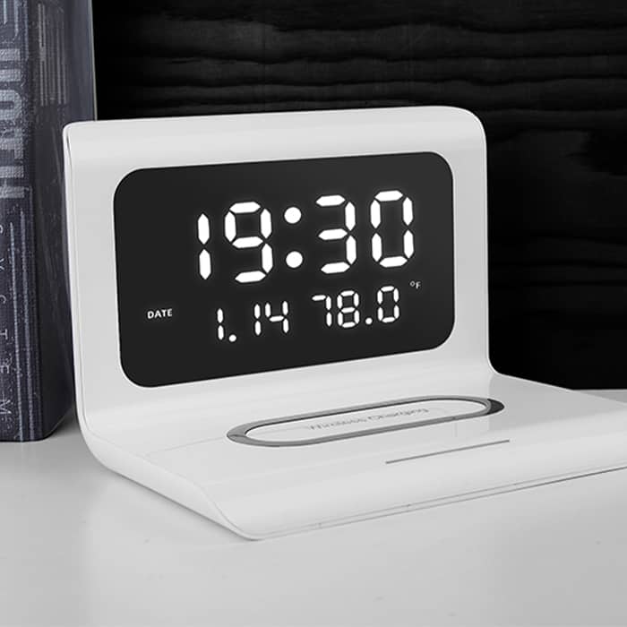 Az innovatív töltőállomás, a DigitalStation egy modern eszköz, amely 4 funkciót kínál: okostelefon vezeték nélküli gyors töltése, ébresztő, naptár és szobahőmérő.