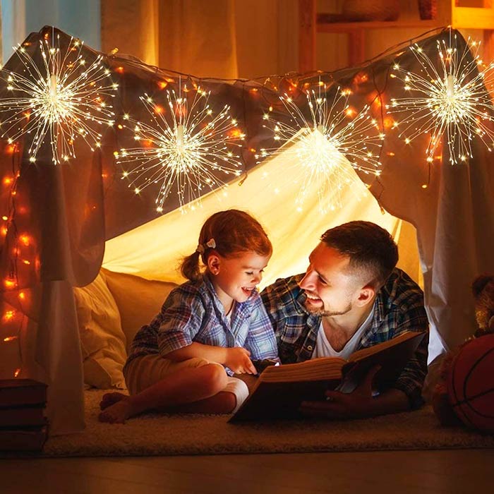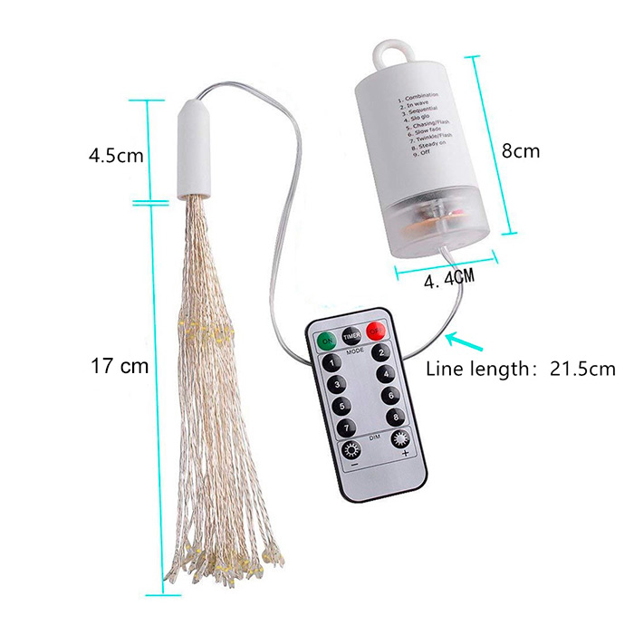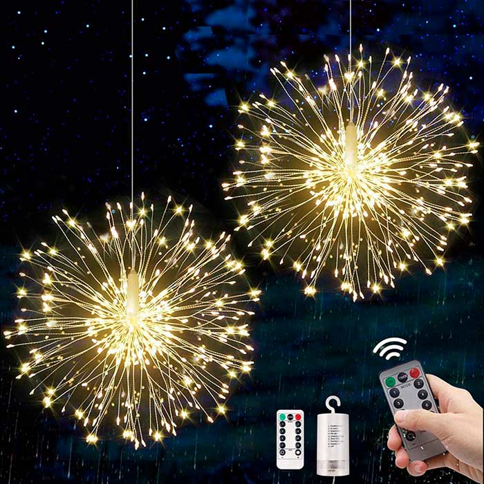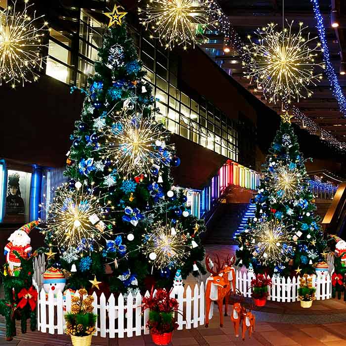 A karácsonyi fények csodálatos tűzijáték hatást keltenek. Az újévi dísz 60 vezetéket tartalmaz 120 LED fényforrással, amelyeket kedved szerint hajlíthatsz. Az újévi fények alkalmasak kültéri díszítésre (erkély, terasz, növények a kertedben stb.) és beltéri díszítésre (karácsonyfa, a mennyezetről lógó díszek stb.)!