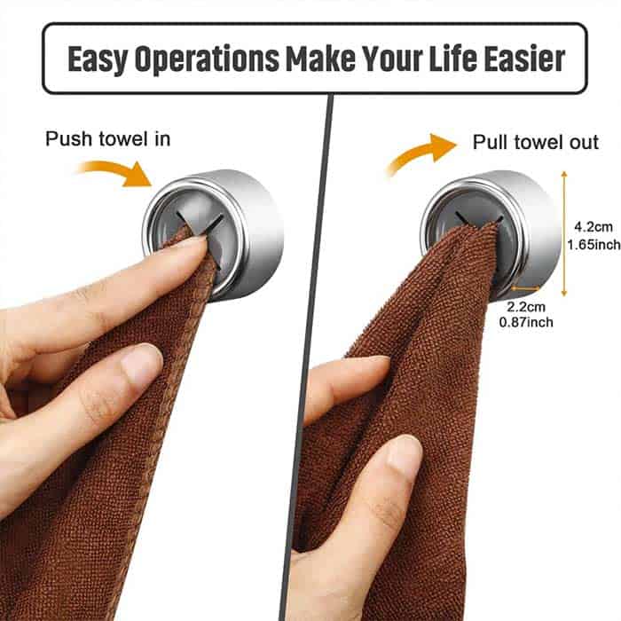 A praktikus és erős törülköző- vagy konyharuha tartó bárhova felszerelhető – konyhaszekrényre, falra, zuhany vagy mosdó mellé, a gyermek kézmagasságába stb., és mindig kéznél lesz! A tartó szilárdan a helyén tartja a törölközőt – egyszerűen nyomja be a tartóba, és amikor szüksége van rá, óvatosan húzza ki!