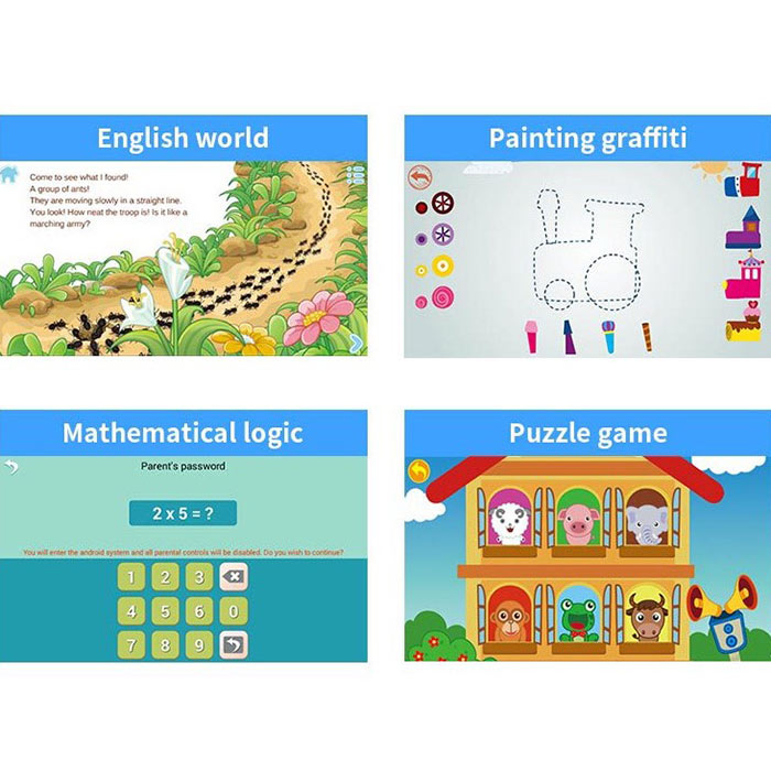 A táblagépen a gyerekek nézhetnek rajzfilmeket, hallgathatnak meséket és játszhatnak oktatási játékokat, amelyek fejlesztik a logikát, a memóriát és a kreativitást. Így a készülék a szórakozás mellett kíváncsiságot és tanulást is ösztönöz.